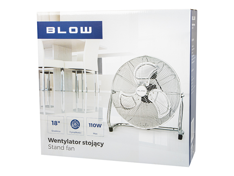 Opakowanie zbiorcze 3 sztuk Podłogowy cyrkulator powietrza BLOW o nadzwyczaj dużej mocy 110W i średnicy 18'' to niezastąpione urządzenie podczas letnich upałów. Idealnie sprawdzi się w domu czy biurze. Dzięki sw