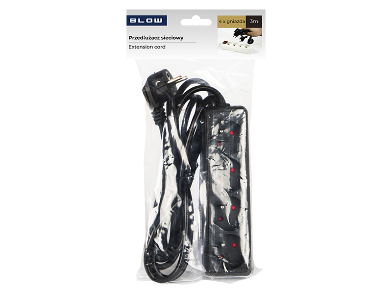 Przedłużacz sieciowy PR-470P z kątowym wtykiem sieciowym oraz 4 gniazdami z uziemieniem.- Model: PR-470P- Żyły: 3 x 1,5mm- Długość całkowita: 3m - Długość przewodu: 2,8m- Wtyk: sieciowy, kątowy- Ilość gniazd: 4- Uziemienie: tak- Kolor pr