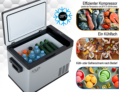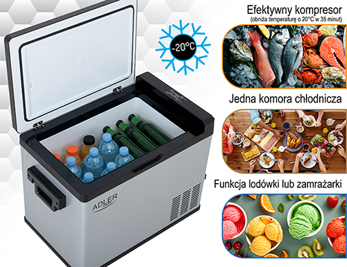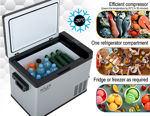 To, co przesądza o funkcjonalności lodówki ADLER AD 8081 i odróżnia ją od tradycyjnych turystycznych sprzętów to duża pojemność 40 L. Dodatkowo łatwo dostępny wyświetlacz LCD informuje nas o najważniejszych danych jak na przykład temperatura Zakre