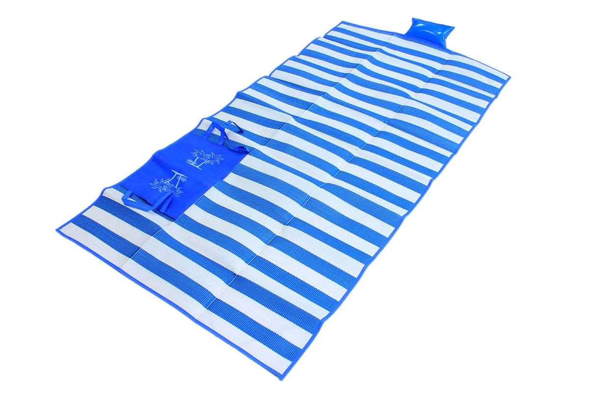 Wodoodporna mata plażowa z dodatkową, dmuchaną poduszką. Doskonale nadaje się do rozłożenia jej na plażowym piasku lub na pikniku w trawie. Bardzo łatwa do złożenia i rozłożenia, niezwykle trwała - świetnie zastępuje tradycyjny koc. Komfort użytkowan