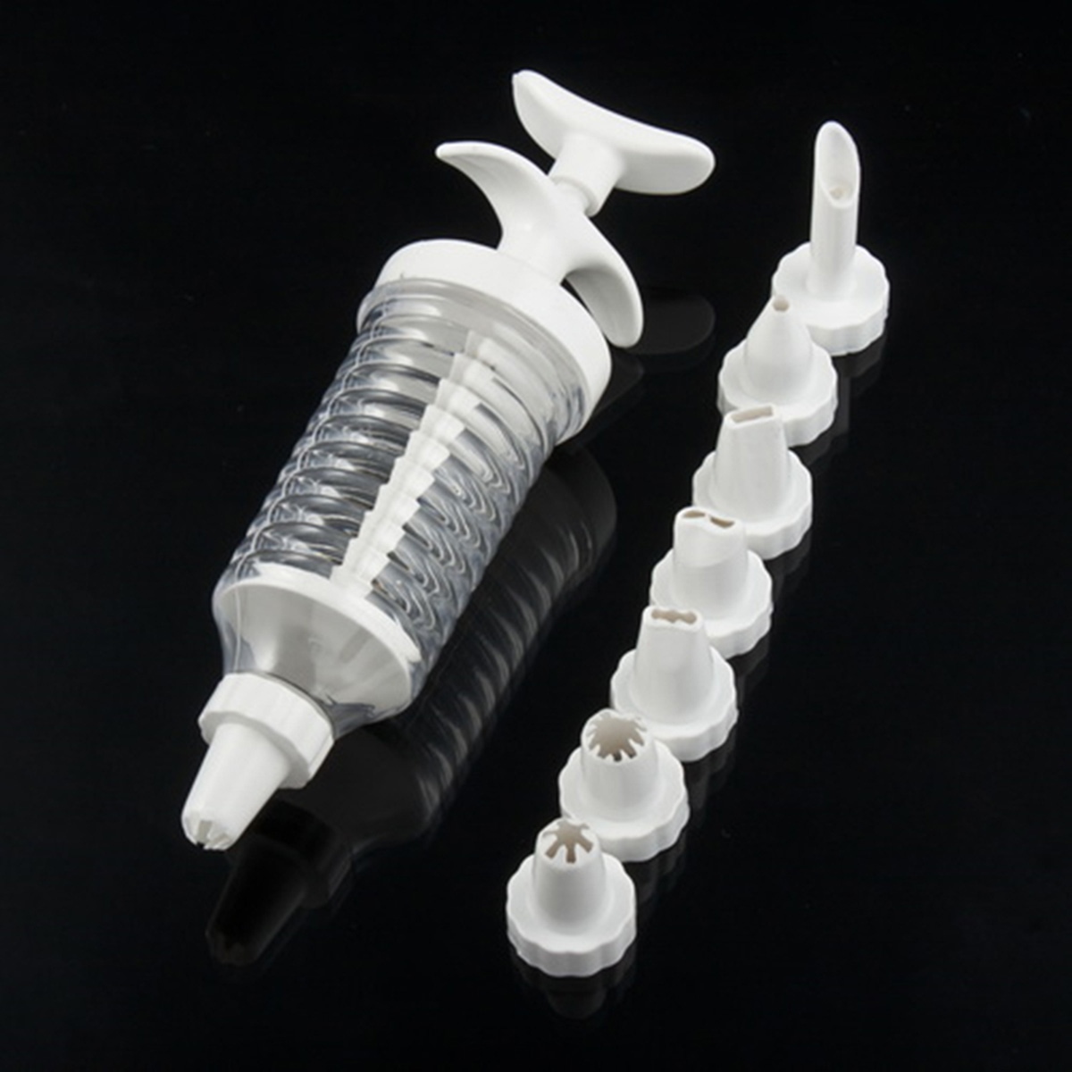 Dekorator tortów ciast strzykawka + 8 końcówek. Z jego pomocą wykonasz pięknie udekorujesz ciasta i talerze na których serwujesz dania.Cechy produktu:Produkt fabrycznie nowy, wysokiej jakości.Dekorator strzykawkowy służący do dekoracji masami ciast i