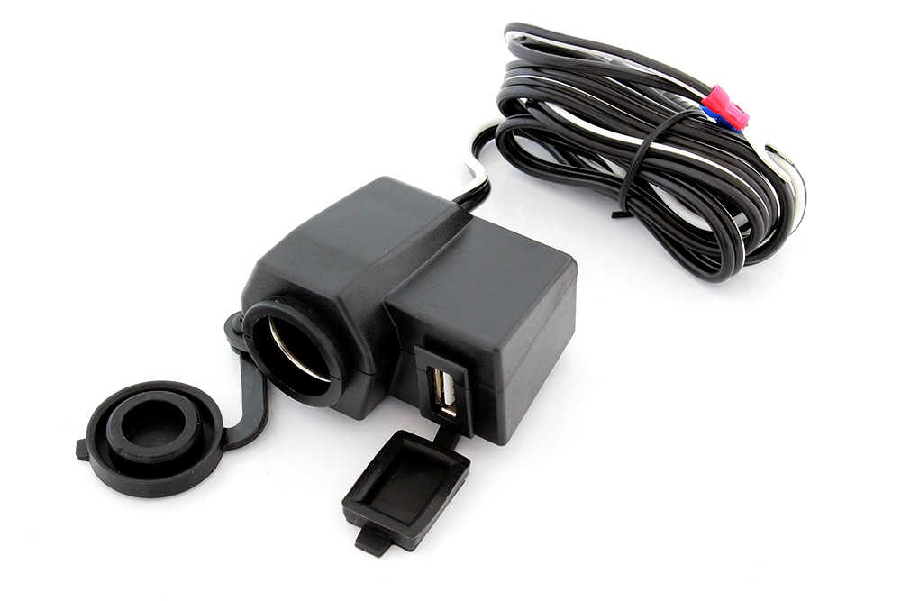 Montażowe gniazdo zapalniczki 12V wyposażone w dodatkowy port USB o napięciu 5V. Doskonały do zastosowania w motocyklach, motorowerach, quadach, skuterach oraz wszystkich innych pojazdach posiadających instalację elektryczną 12V, ale nie wyposażonych