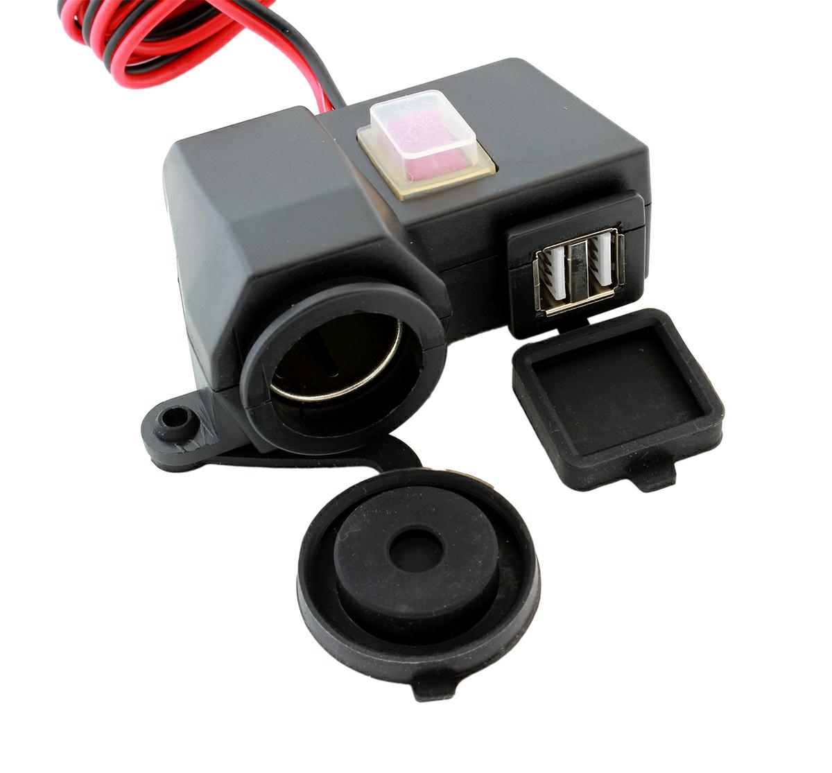 Montażowe gniazdo zapalniczki 12V wyposażone w 2 dodatkowe porty USB o napięciu 5V i prądzie 2.1A! Doskonały do zastosowania w motocyklach, motorowerach, quadach, skuterach oraz wszystkich innych pojazdach posiadających instalację elektryczną 12V, al