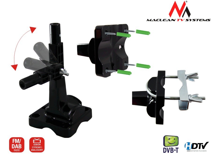 Antena TV DVB-T wew-zew Maclean MCTV-970 BlackJest to specjalnie zaprojektowana antena do odbioru naziemnej transmisji telewizyjnej. Jest to najlepsze przenośne rozwiązanie dla domu do odbioru cyfrowej telewizji. Antena MCTV-970 może być użyta z te