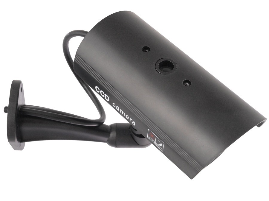 Opis produktu: Bardzo dobra kopia oryginalnej kamery z imitacją diody IR oraz diodą świecącą na czerwono (zasilanie 2 małe paluszki). Źródło zasilania: 2 x 1.5V AAA (brak w zestawie) Materiał: ABS Wymiary: ? 55mm x 132mm (atrapa kamery) x