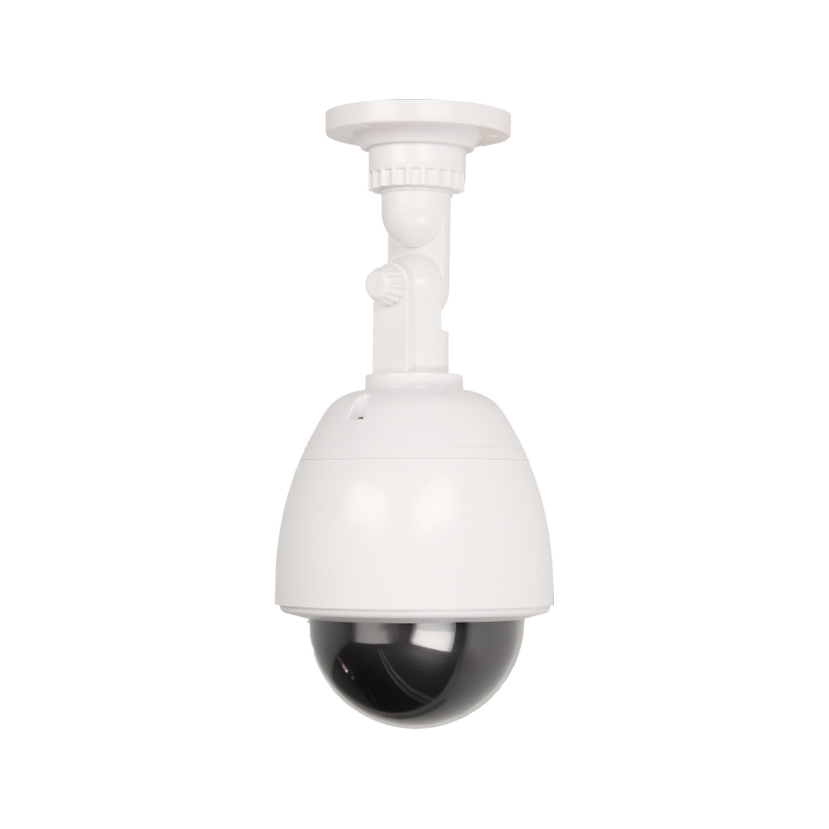 Urządzenie o realnym wyglądzie obrotowej kamery monitorującej z migającą diodą LED. Atrapa przeznaczona do montażu wewnętrznego i zewnętrznego.