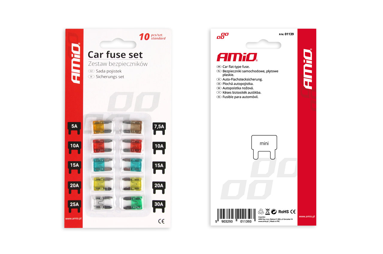 Wysokiej jakości zestaw bezpieczników samochodowych płytkowych typu MINI chroniący instalacje elektryczne pojazdów przed ich uszkodzeniem. Typ bezpiecznika: płytkowy mini Zawartość zestawu: 5A, 7.5A, 2x10A, 2x15A, 2x20A, 25A, 30A Ilość sztuk w opakow