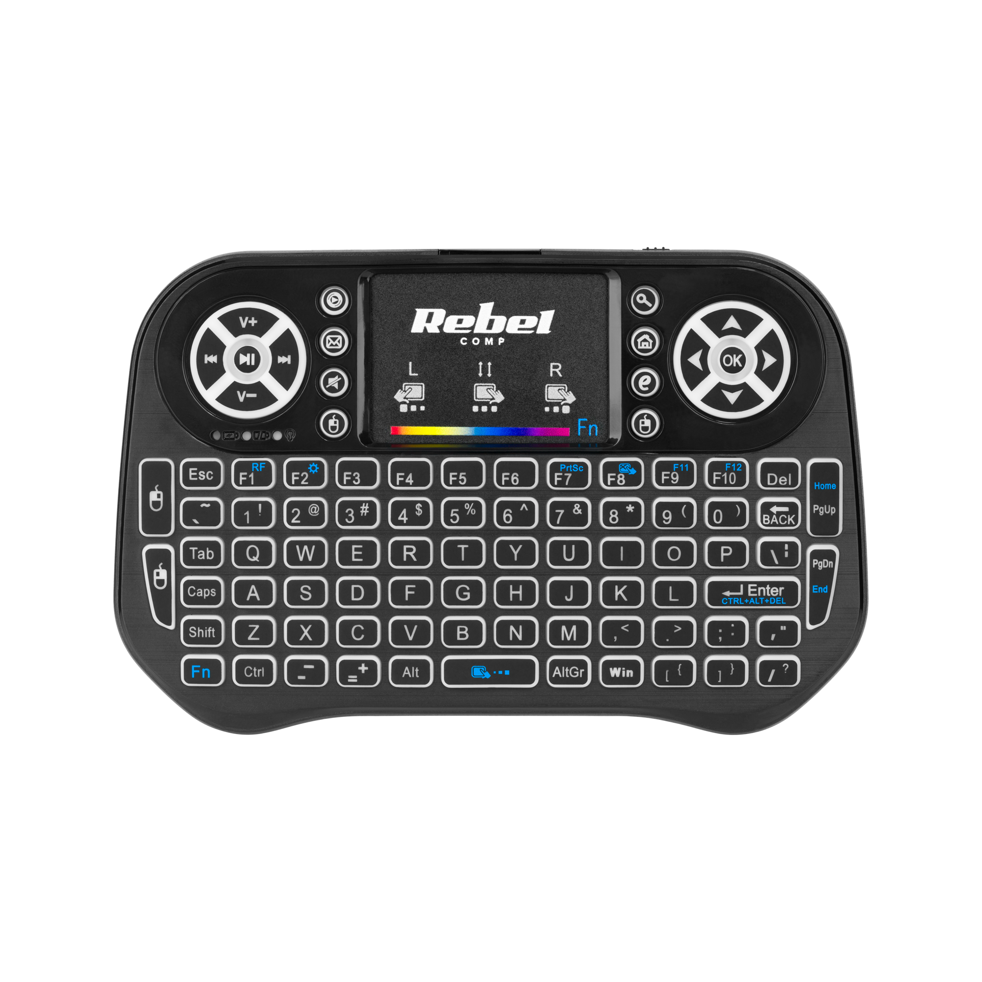 Klawiatura bezprzewodowa do Smart TV Rebel Mini Q5Klawiatura bezprzewodowa Rebel Mini Q5 to doskonały wybór dla każdego, kto ceni sobie funkcjonalność i jakość. Za jej pomocą można wygodnie obsługiwać komputer, np. prowadzić prezentacj