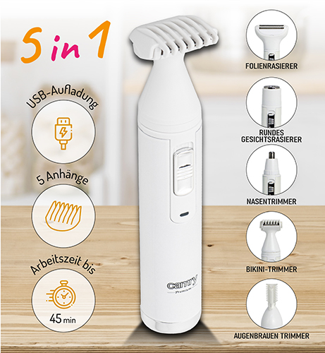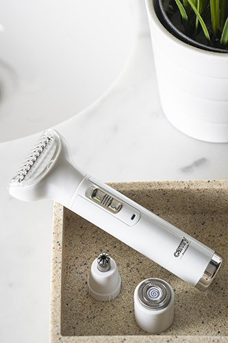 Precyzyjny i elegancki zestaw do usuwania niechcianych włosków z różnych części ciała. Dzięki dwóm golarkom w tym jednej z mikrofolią i trzem końcówkom trymującym może on zostać wykorzystany zarówno do golenia nóg, wyrównania brwi lub stylizacji okol