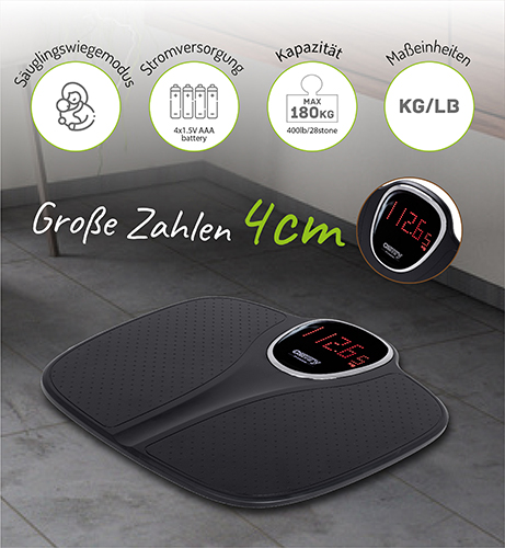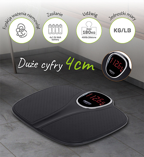 Precyzyjna elektroniczna waga łazienkowa z udźwigiem maksymalnym 180 kg. Doskonały wybór dla sportowców, osób odchudzających się i innych osób dbających o masę ciała. Wykonanie z wytrzymałego tworzywa zapewnia bezpieczeństwo użytkowania. Waga posiada