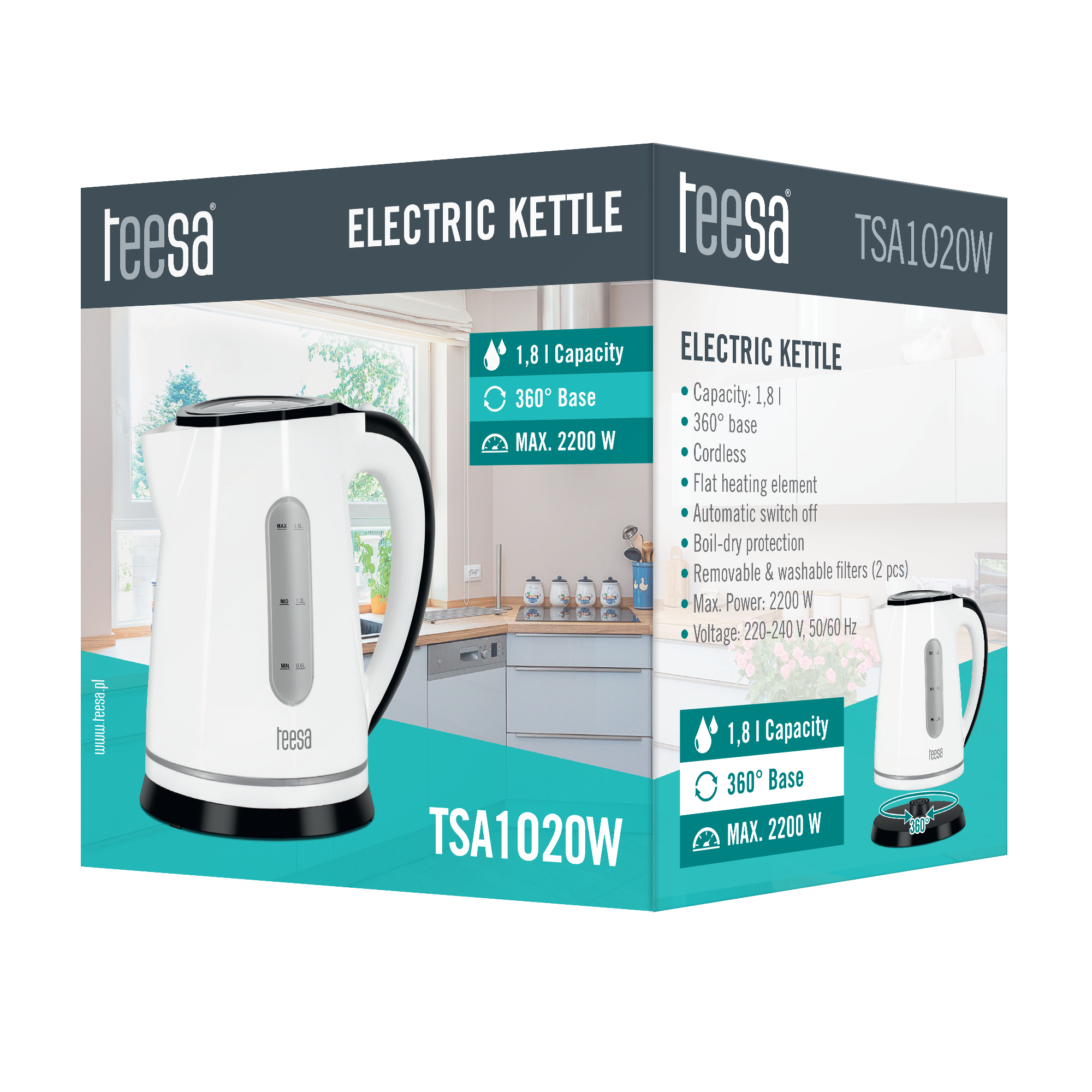 Wysokogatunkowe tworzywo, z którego został wykonany czajnik Teesa o symbolu TSA1020 oraz dostępność w kolorze białym lub czarnym, sprawia, że urządzenie idealnie wkomponuje się w niemal każdy wystrój kuchni. Duża pojemno