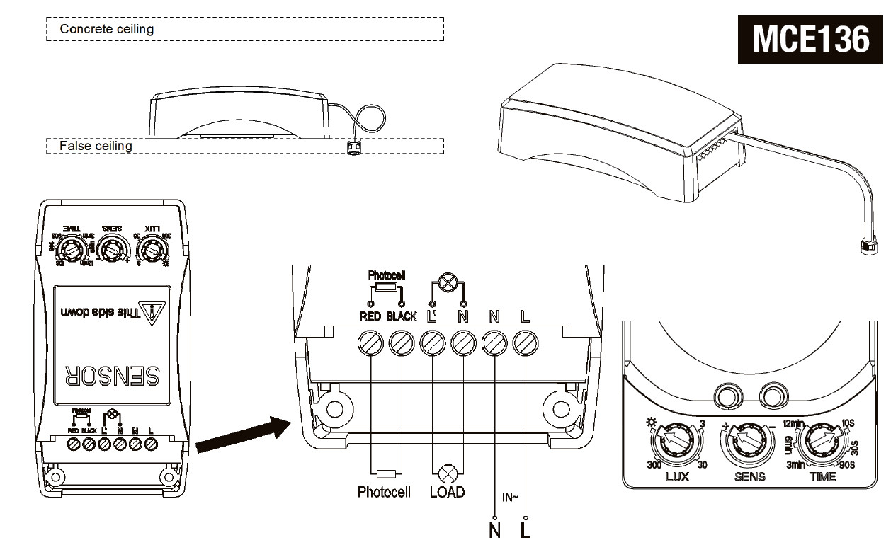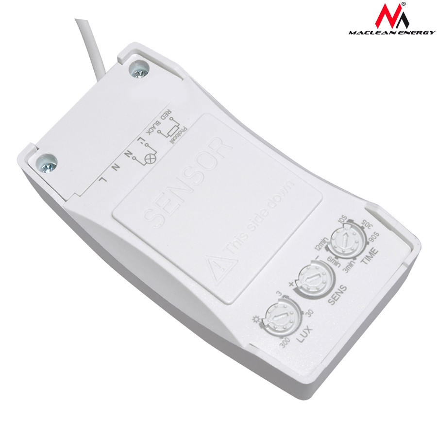 Opis produktu:FunkcjeCzujnik oświetlenia w zależności od potrzeby może zostać regulowany: pozycja SŁOŃCE (max) ?praca w dzień i nocyKSIĘŻYC ?praca w nocy przy poziome natężenia rzędu ok. 3LUX.Może zostać skalibrowany do potrzeb położenia ? zasięg wyk