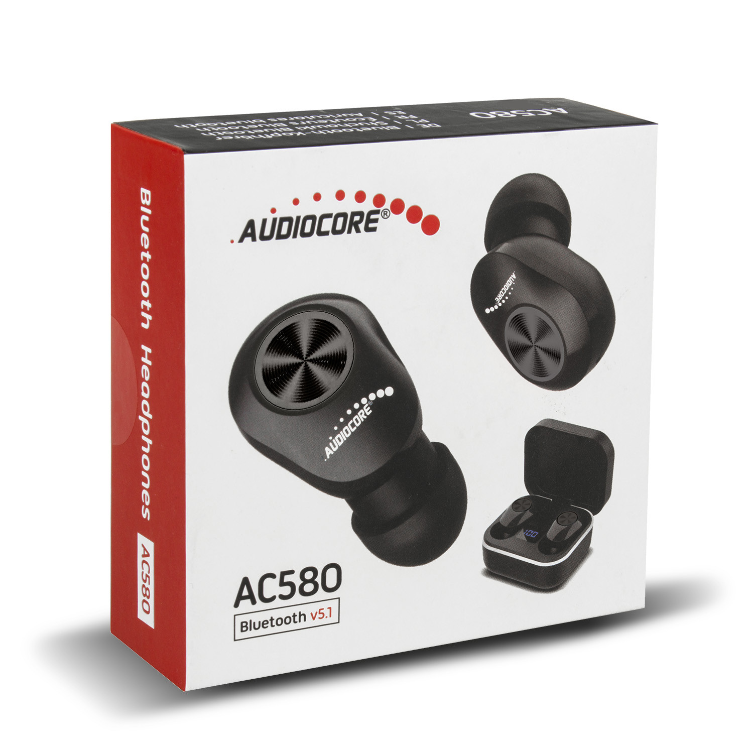Douszne słuchawki TWS BT 5.1 Audiocore z bazą do ładowania AC580Słuchawki bezprzewodowe bluetooth Audiocore AC580 W TWS to para dwóch niezależnych od siebie słuchawek bluetooth, których można używać razem lub osobno w technologii True Wireless Stereo