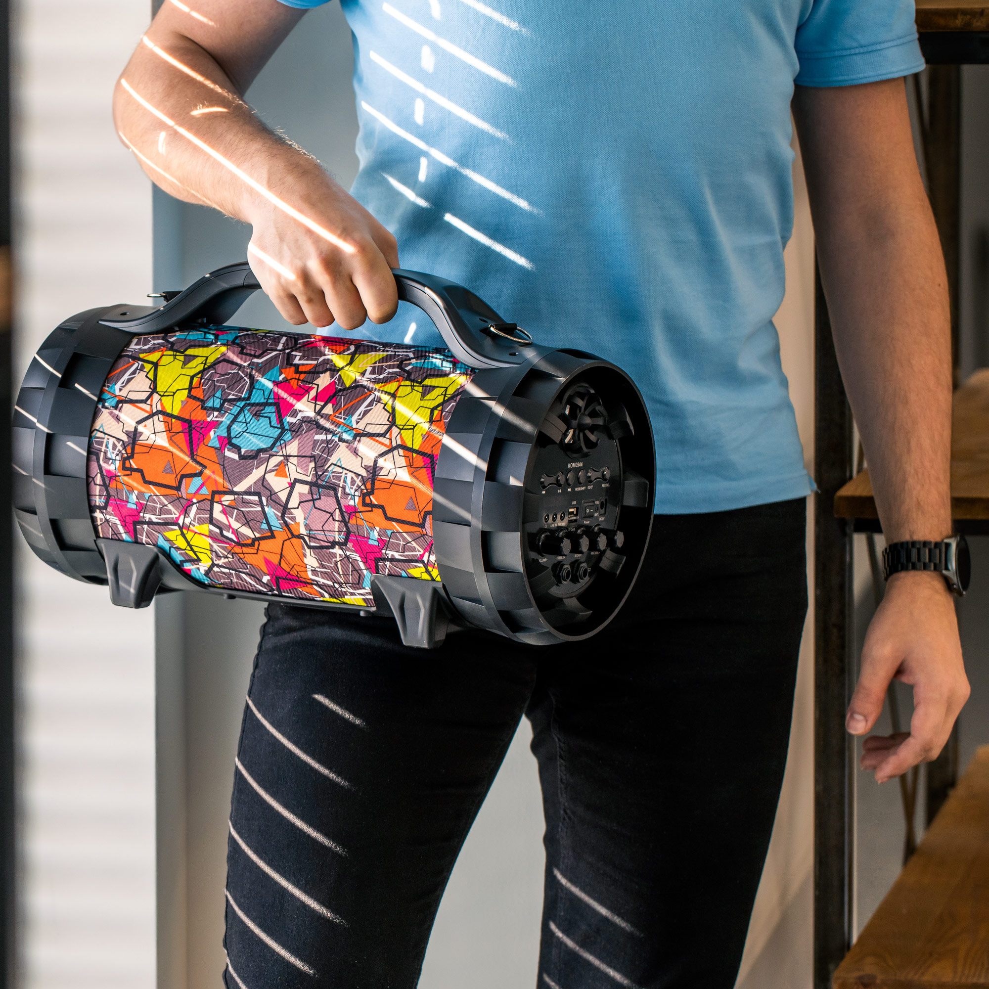 Duży przenośny głośnik bezprzewodowy marki REBEL