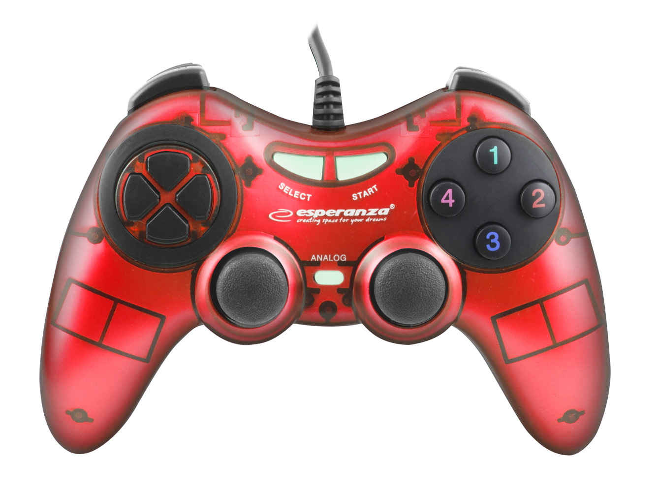 EGG105R Gamepad PC USB Fighter czerwony EsperanzaFunkcjonalny gamepad z wibracjami do komputerów PC.Idealnie współpracuje z zaawansowanymi grami. Ergonomiczny kształt ułatwia trzymanie i nie powoduje zmęczenia dłoni w cz