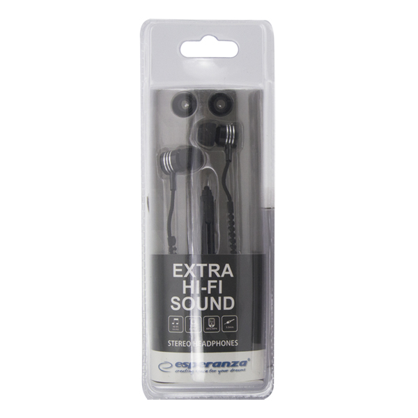 EH161K Słuchawki douszne Zipper czarne EsperanzaWysokiej jakości, douszne słuchawki stereofoniczne idealnie nadające się do wszelkich przenośnych odtwarzaczy MP3/MP4, radia, komórek, itp. Dzięki wyśmienitej jakości materiał&oac