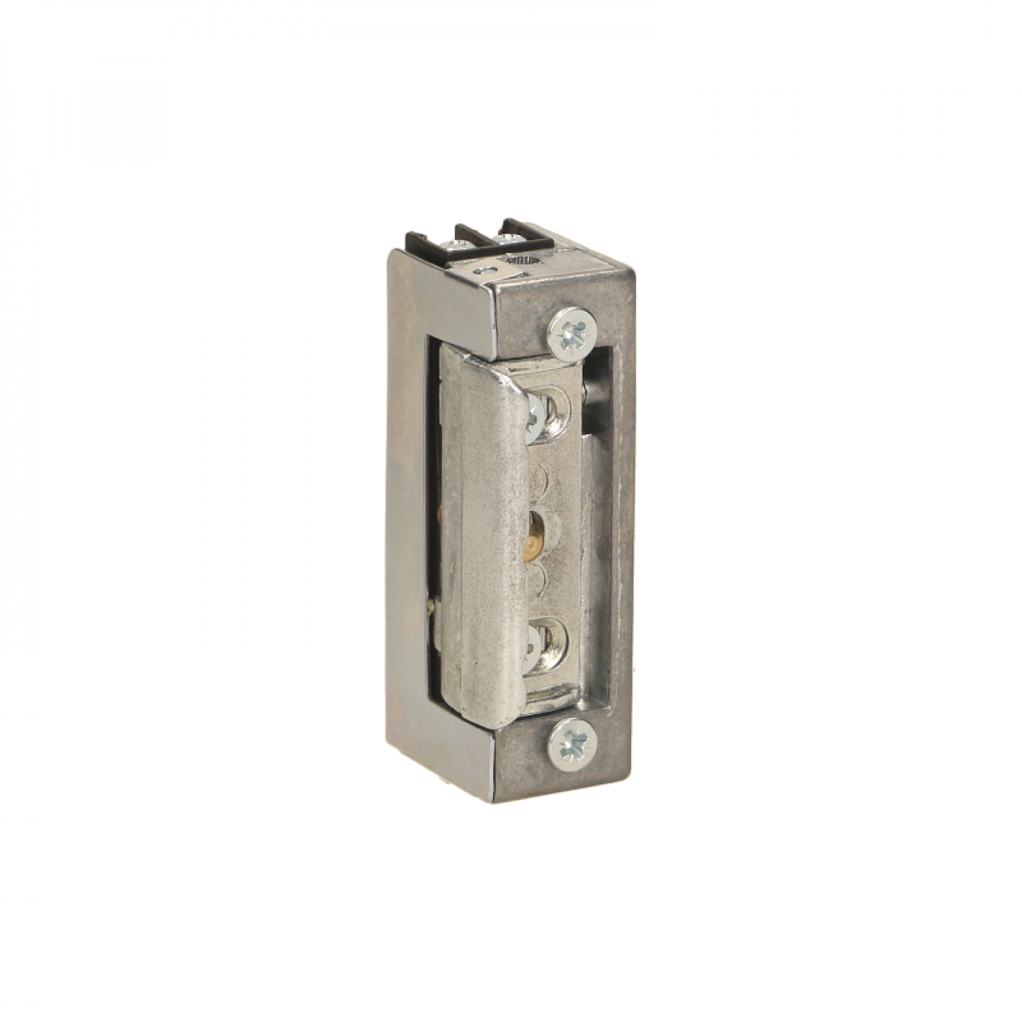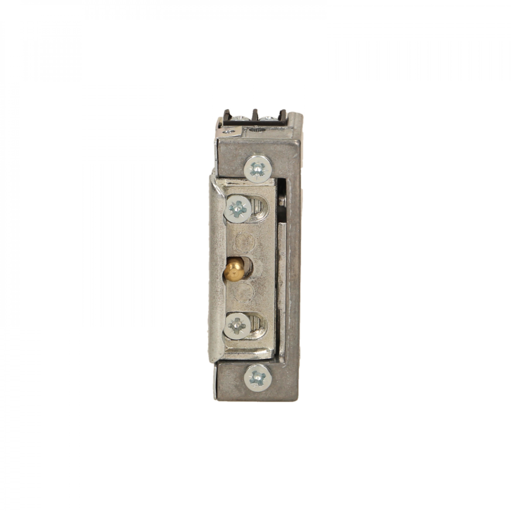 Elektrozaczep symetryczny R4-12.31 ze zmniejszonym poborem prądu, wyposażony jest w dodatkową funkcję pamięci, która pozwala na sterowanie elektrozaczepem przez podanie krótkiego impulsu napięciowego, po ustaniu którego stan otwarcia zaczepu podtrzym