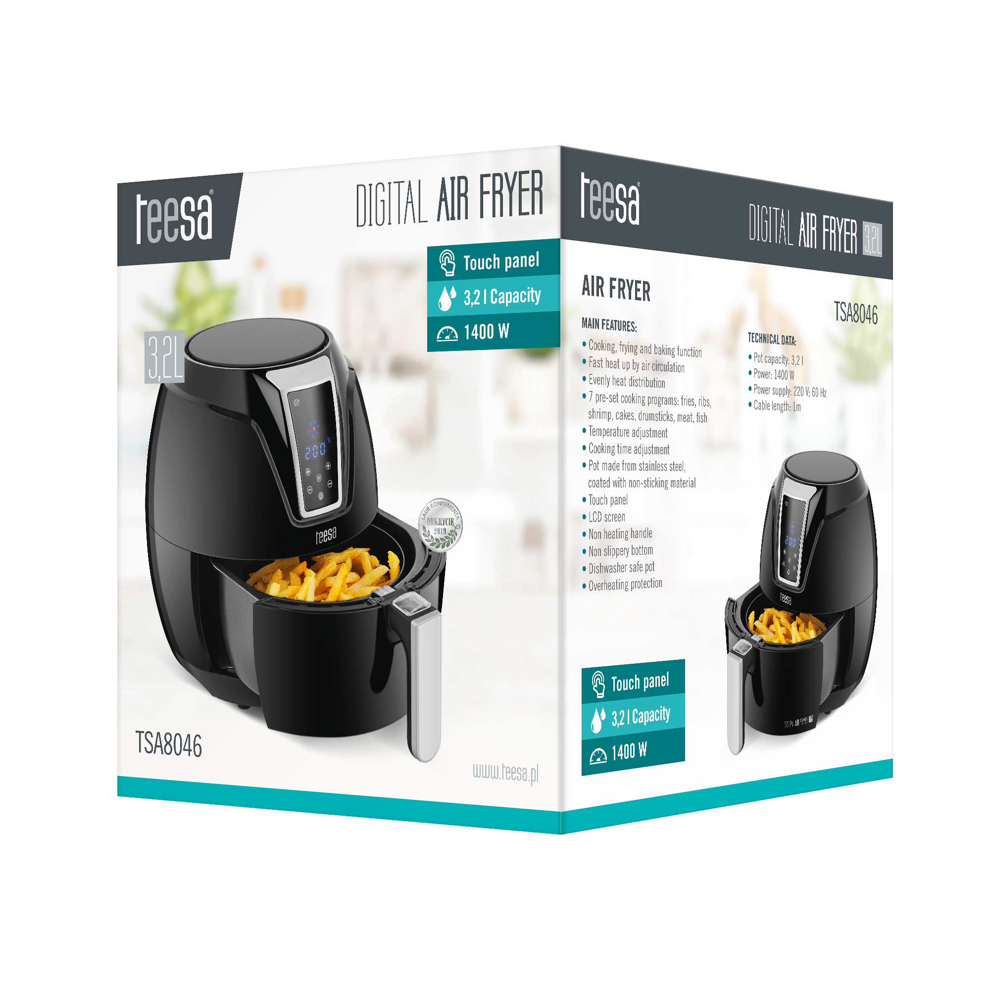 Frytkownica beztłuszczowa Teesa Digital Air FryerUgotowane ziemniaki i tradycyjnie przyrządzone mięso znudziły się Twojej rodzinie? Zaskocz wszystkich ulubionymi potrawami w zupełnie nowym wydaniu! Dzięki beztłuszczowej frytkownicy Teesa Digital Air