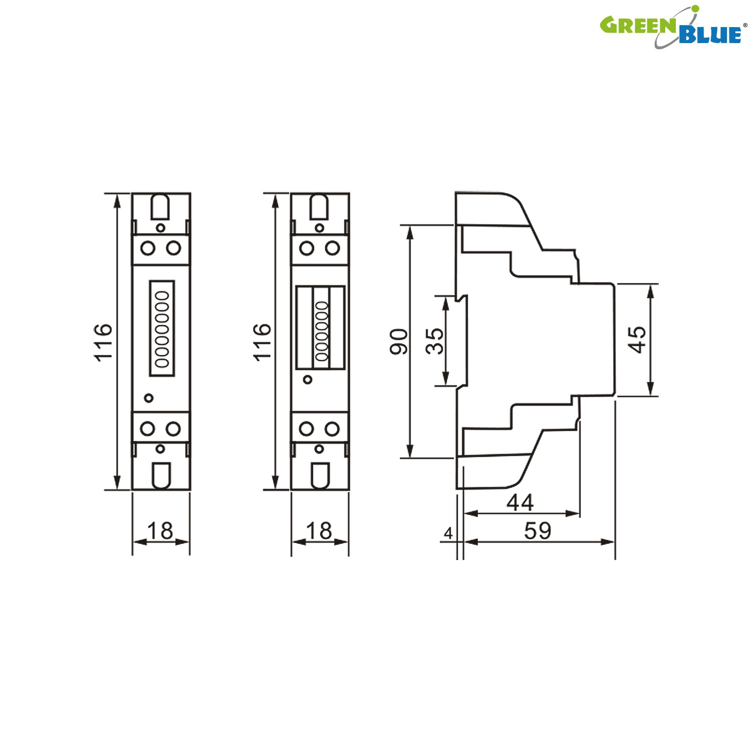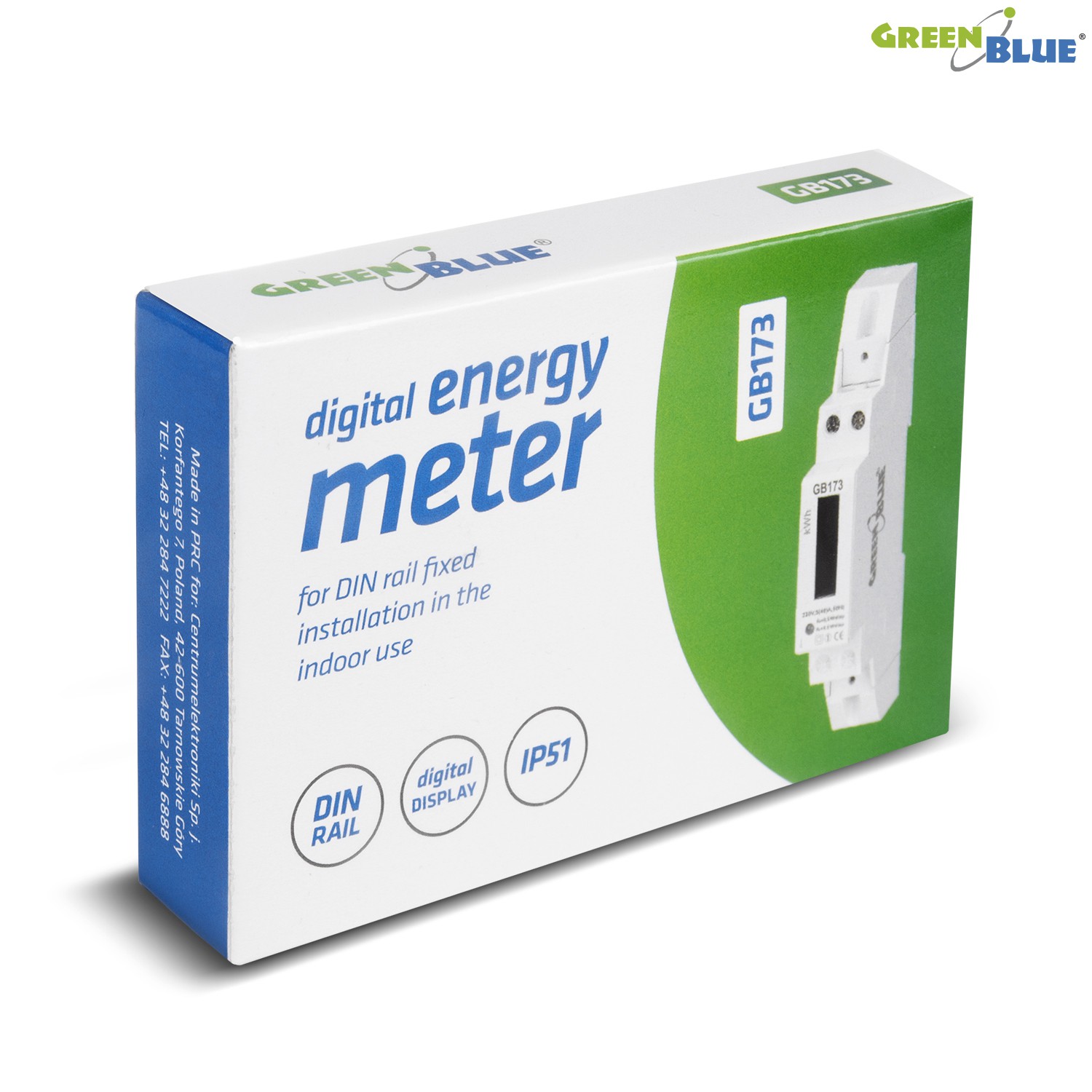 GB173 55123 Licznik energii na szynę DIN wyświetlacz LCDGB173 to elektroniczny watomierz do dokonywania wskazań w jednostkach metrycznych (kWh). Specjalny układ elektroniczny pod wpływem przepływającego prądu i przyłożonego napięcia generuje impulsy