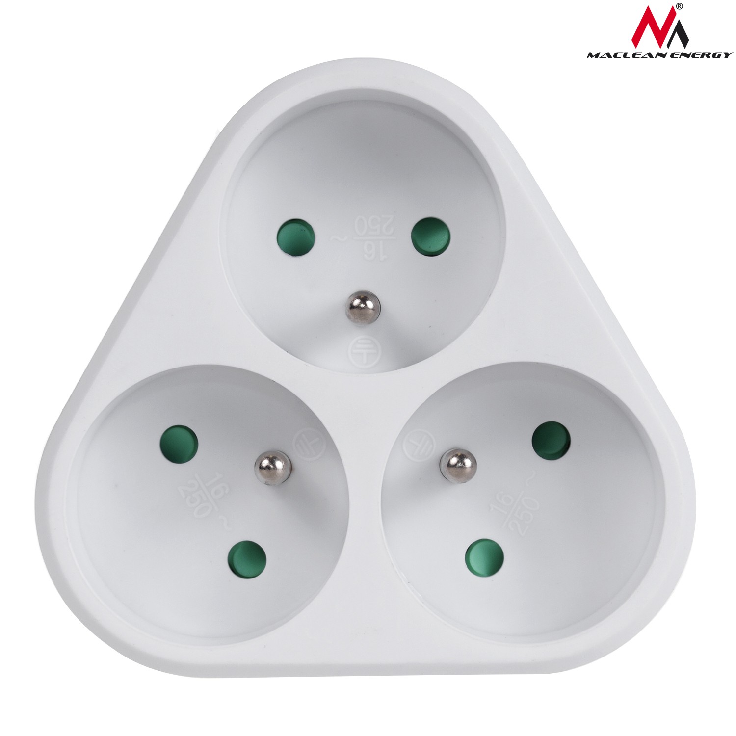 MCE214Gniazdko prądowe potrójne z uziemieniem Maclean Energy.ZabezpieczenieGniazdko MCE214 posiada zabezpieczenie przed niepowołanym dostępem dzieci oraz uziemienie.Specyfikacja:Producent: Maclean Energy Model: MCE214Źródło zasilania (napięcie): 230V