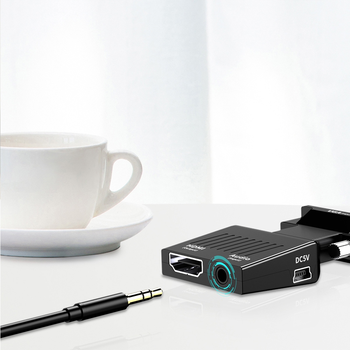 Wysokiej jakości konwerter / przejściówka video / audio z VGA (D-Sub) na HDMI. Adapter konwertuje sygnał analogowy video ze złącza D-Sub na sygnał cyfrowy HDMI w wysokiej rozdzielczości aż 1080p. Dodatkowo w zestawie znajd