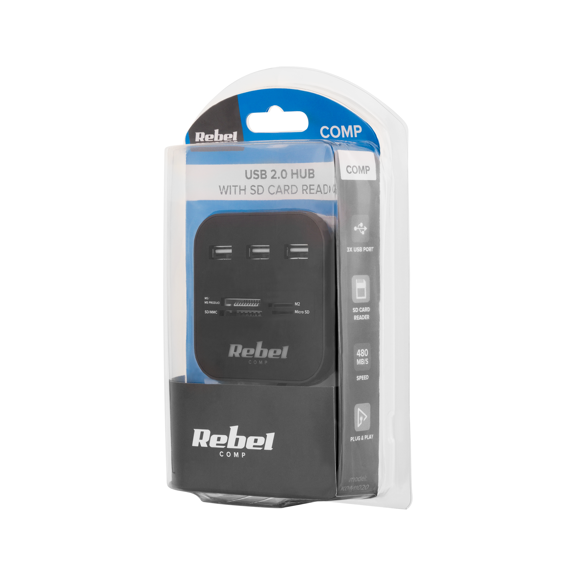 HUB USB 2.0 3 portowy z czytnikiem kart pamięci