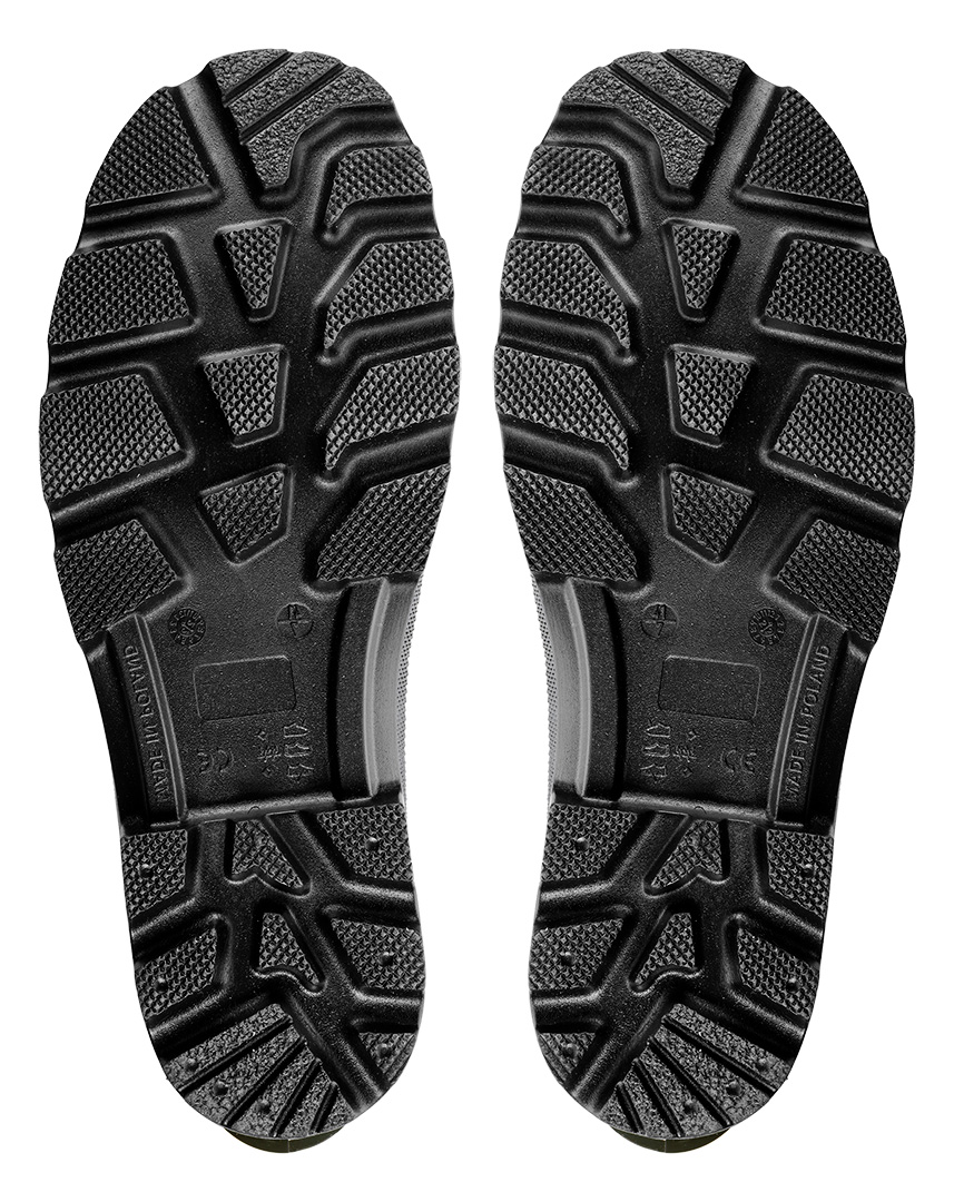 Kalosze robocze OB FO SRC, rozmiar 46, PVC, podszewka z dzianiny poliamidowej, antypoślizgowa podeszwa odporna na oleje (FO), zabudowana pięta, SRC- odporność na poślizg na podłożu ceramicznym pokrytym roztworem laurylosiarczanu sodu (SLS) i na podło