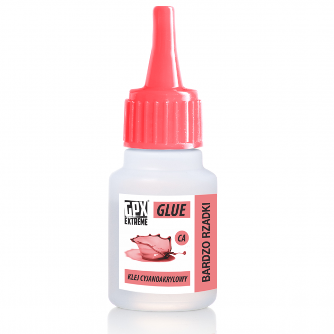 Klej cyjanoakrylowy GPX Extreme o bardzo rzadkiej konsystencji, w kilkanaście sekund sklei metal, szkło, drewno, gumę, plastik (nieduże ilości), powierzchnie ceramiczne, EPP i inne materiały. Nie zaleca się do klejenia papieru, styropianu, depronu, l