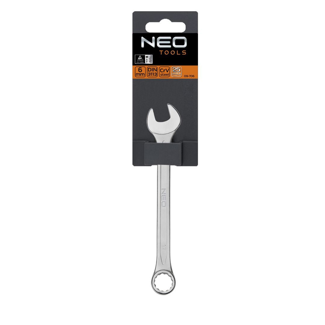 Klucz płasko-oczkowy 22 x 260 mm, stal CrV, DIN3113, przetłoczenie, wykończenie satynowe, polerowana główka odgięta pod kątem 15°, certyfikat TÜV M+T, 25 lat gwarancji