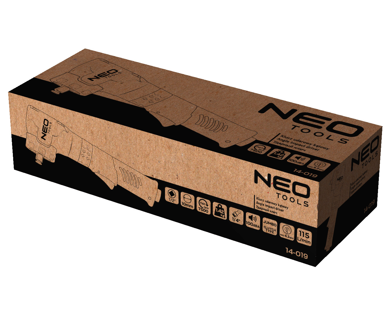Klucz udarowy kątowy, 1/2", 500 Nm, ciśnienie robocze 6.3 bar, średnie zużycie powietrza 113 l/min., 75000 obr.-1, waga 1.17 kg, CE