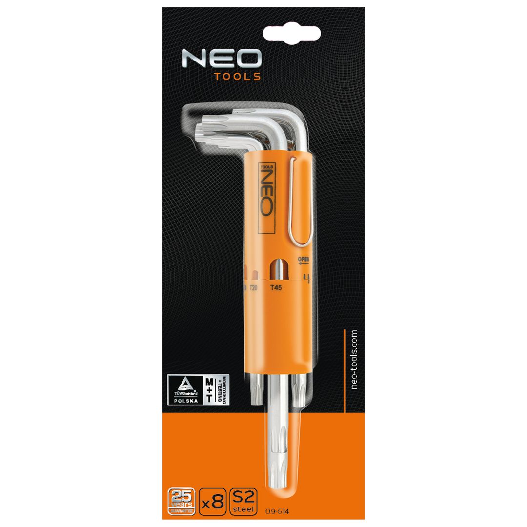 Klucze Torx T10-T50, zestaw 8 szt., stal S2, rozmiary: T10, T15, T20, T25, T30, T40, T45, T50, certyfikat TÜV M+T, 25 lat gwarancji