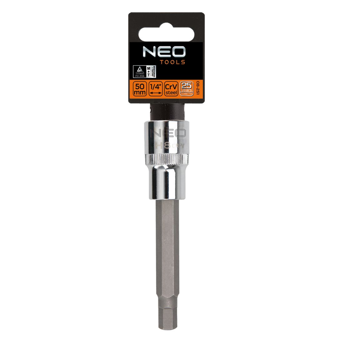 Końcówka sześciokątna na nasadce 1/2", H6 x 100 mm, nasadka ze stali CrV, końcówka ze stali S2, certyfikat TÜV M+T, 25 lat gwarancji