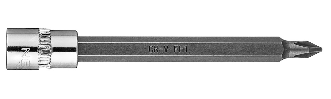 Końcówka wkrętakowa PH1 na nasadce 1/4", długa, 87 mm, stal CrV