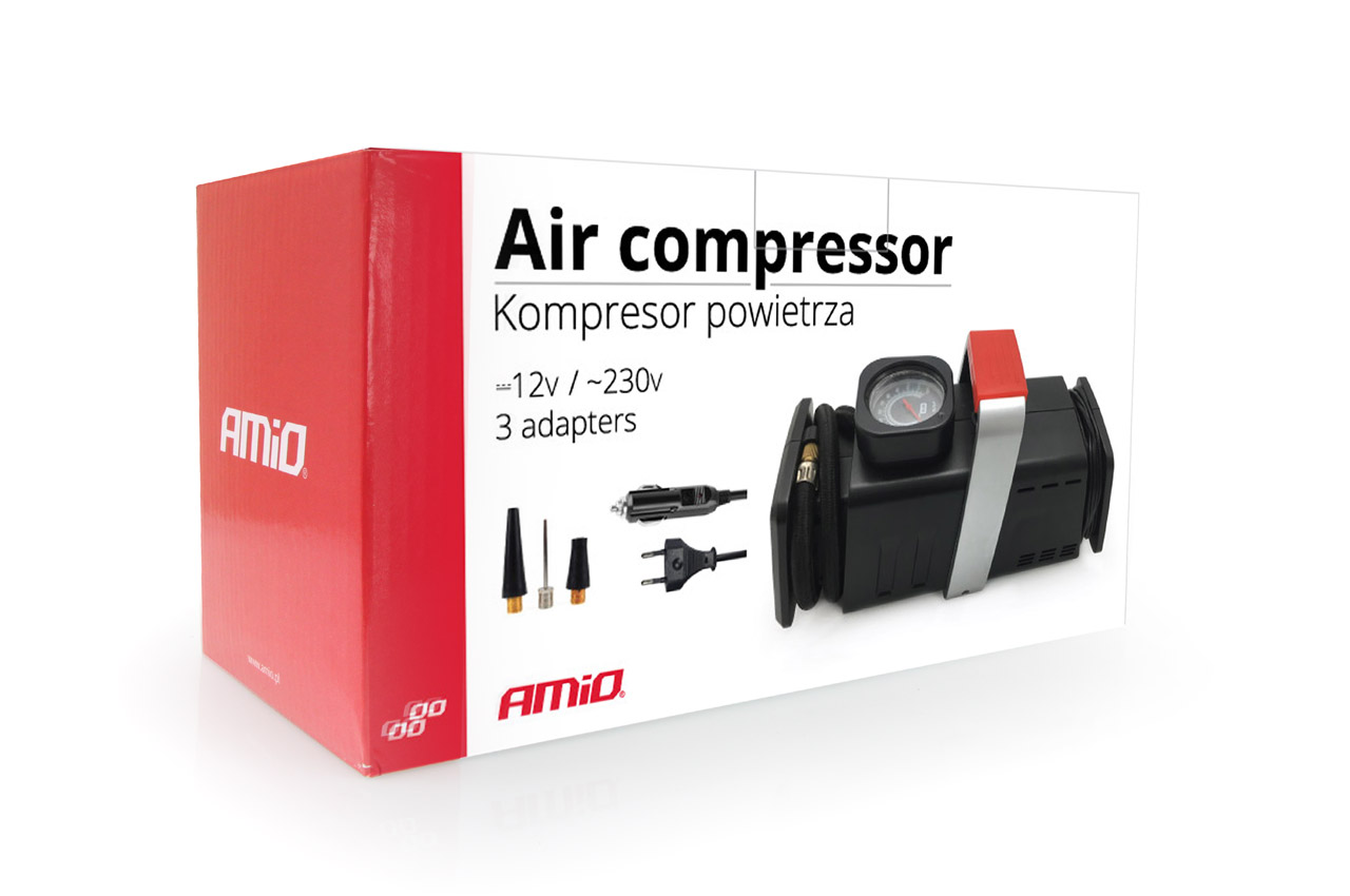 WŁAŚCIWOŚCI: zasilanie DC 12 V/ AC 220V ciśnienie eksploatacyjne: maks. 10 barów w zestawie 3 złączki do pompowania np. do piłek, materacy, opon rowerowych zintegrowany manometr wykonany z tworzywa sztucznego praktyczny schowek na przewody PARAMETRY
