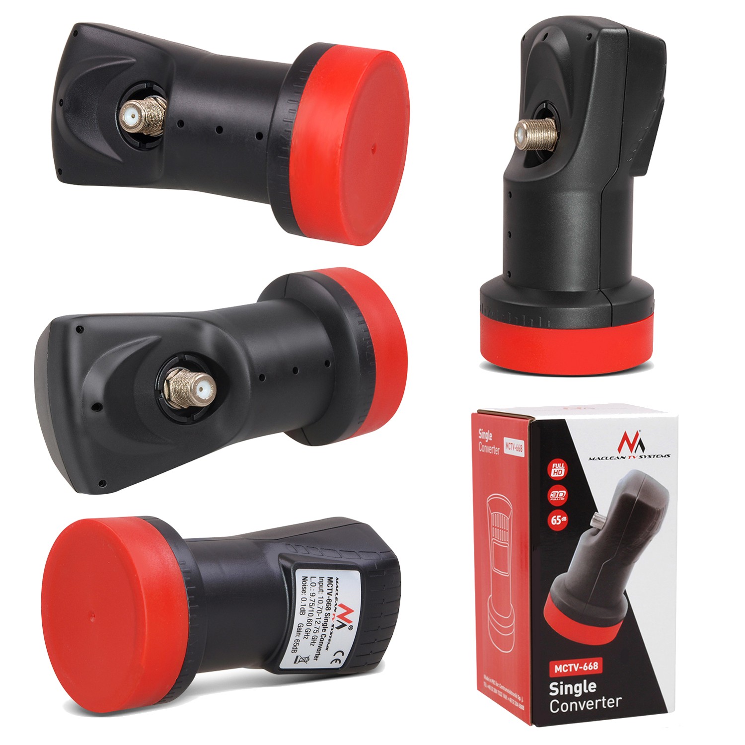 Wysokiej jakości, uniwersalny konwerter satelitarny Single ( LNB ) MCTV-668 o współczynniku szumów 0,1dB. Precyzyjne wykonanie i wysokie parametry techniczne przekładają się na mniejszy wpływ warunków atmosferycznych na jakość odbieranego sygnału. Ko