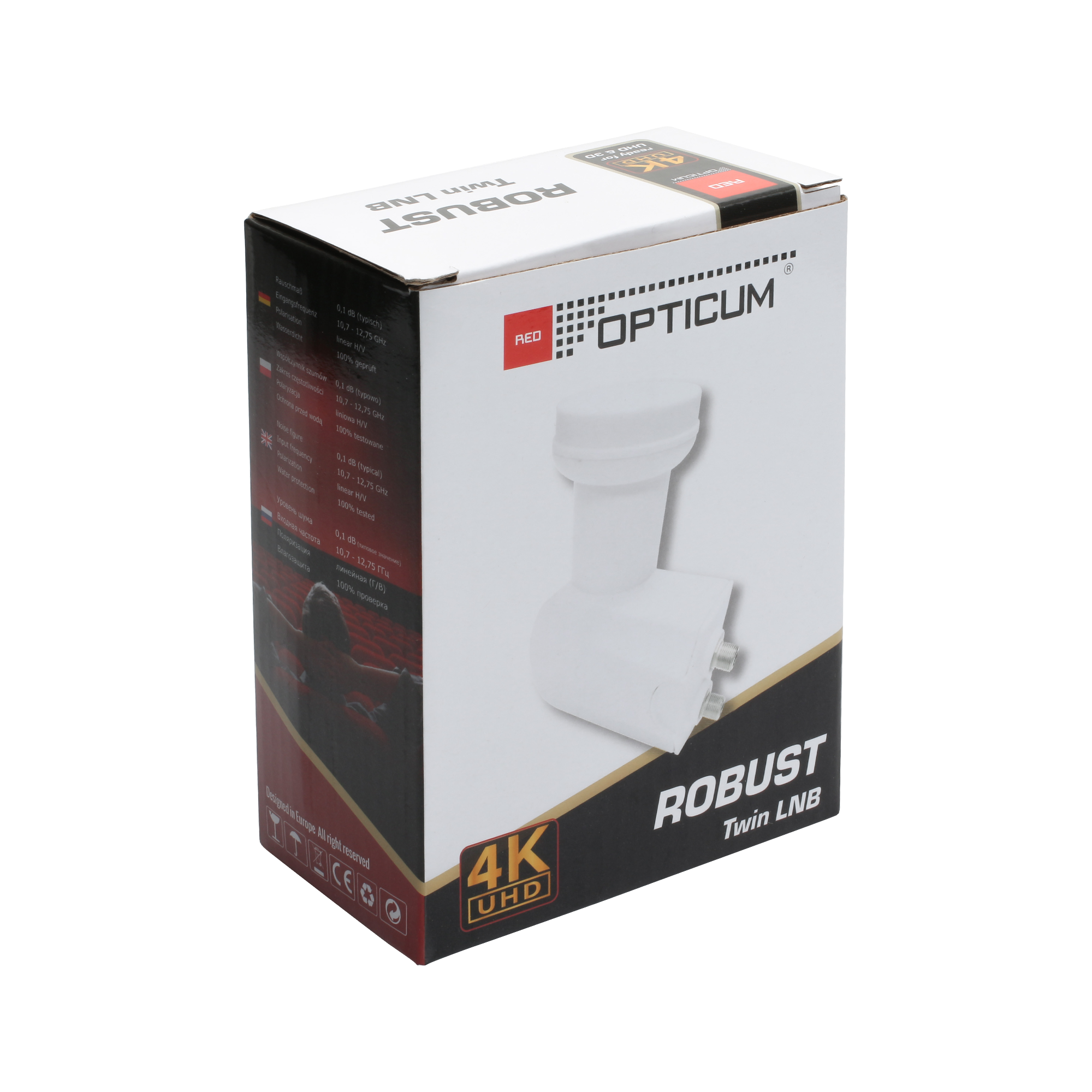 Jest to konwerter z serii OPTICUM ROBUST, umożliwiający niezależny odbiór programów satelitarnych jednocześnie w dwóch tunerach satelitarnych lub pozwalający na prawidłowe podłączenie sygnału satelitarnego do tunera z nagrywarką (tuner dwugłowicowy).