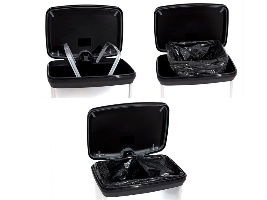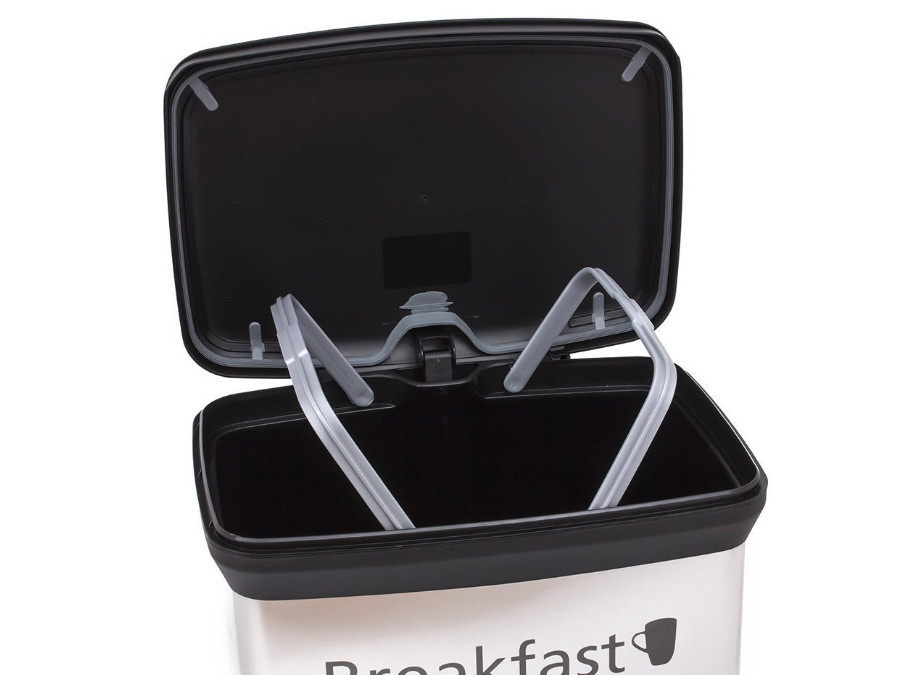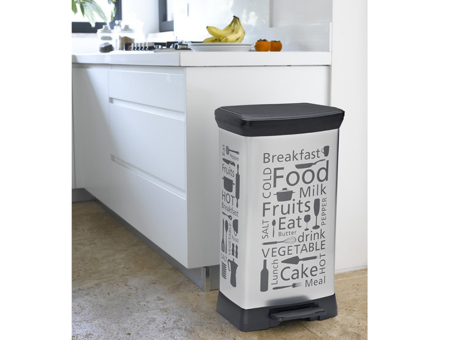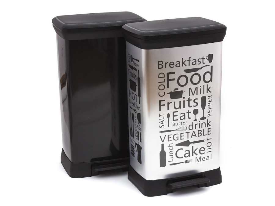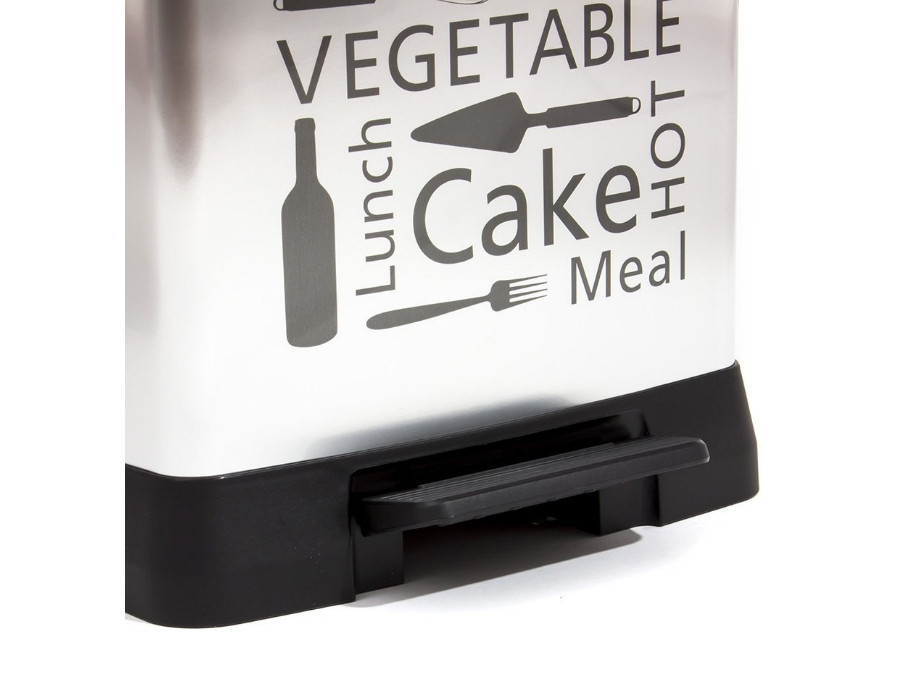 Funkcjonalny kosz na śmieci, ułatwiający utrzymanie czystości.Wykonany z plastiku i pokryty metalizowaną powierzchnią. Znakomicie współgra z nowoczesnym wystrojem wnętrz.Jest lżejszy niż kosz metalowy.Zbiornik na śmieci otwiera się nogą za pomocą spe