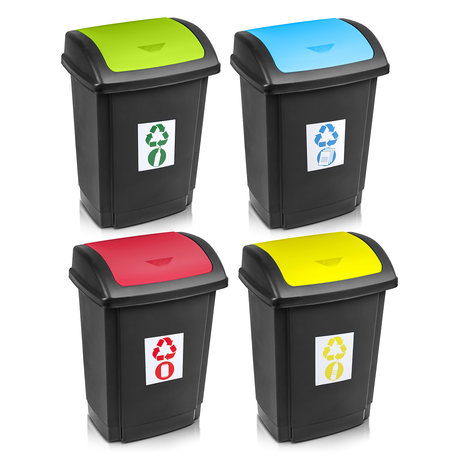 Kosz do segregacji odpadów SWING o pojemności 25lKosze z serii SWING oklejone są naklejkami z symbolami poszczególnych odpadów (plastik, papier, szkło, metal).Pokrywa wyposażona jest w ramkę przytrzymującą worek, dzięki czemu nie wpada on do środka.S