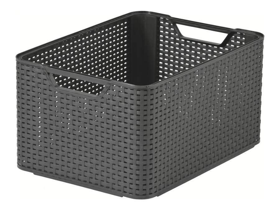 Praktyczny pojemnik do przechowywania z kolekcji Style Curver w rozmiarze L.Wygląda jak rattanowy koszyk, ale wykonany jest z lekkiego, kremowego tworzywa sztucznego.Kosz z pokrywą, dzięki nowoczesnemu designowi doskonale pasuje do różnych wnętrz: ła