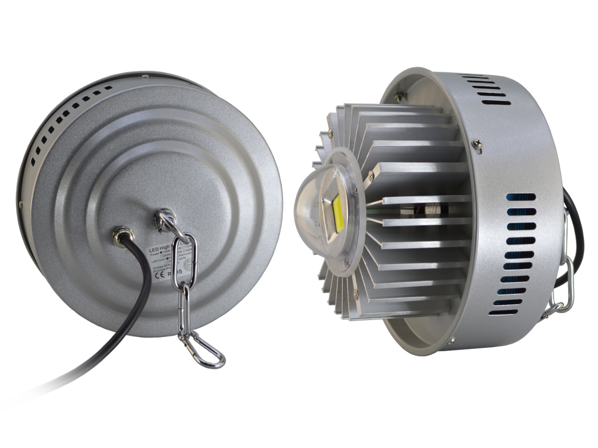 lampa przemysłowa z nowoczesną wysokowydajną diodą COBbardzo solidna, masywna i wytrzymała, odporna na uszkodzenia dzięki metalowej obudowiebardzo wydajna lampa, ma aż 10 000 lumenów i potrafi oświetlić aż 40m2bardzo łatwy montaż zawieszenia na łańc