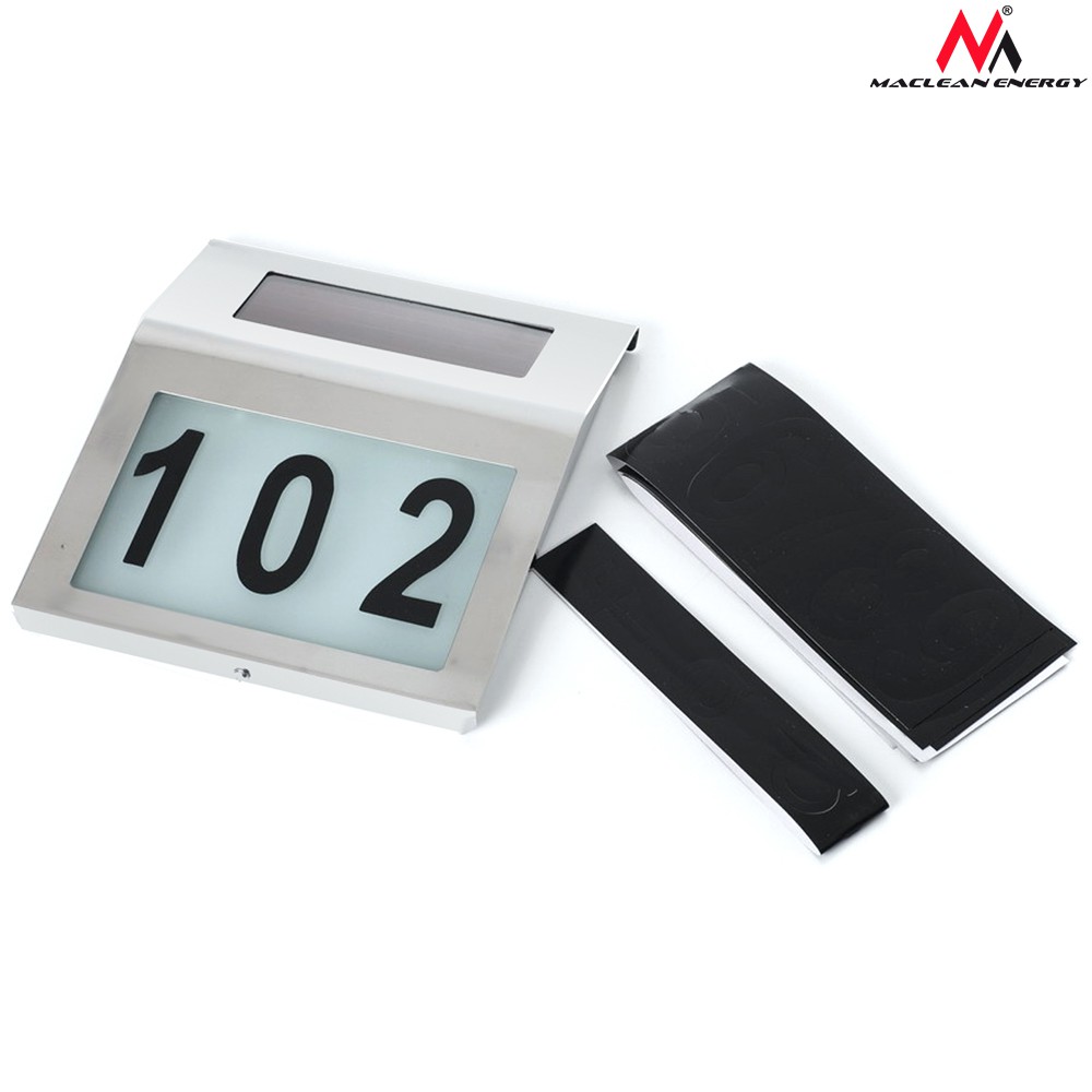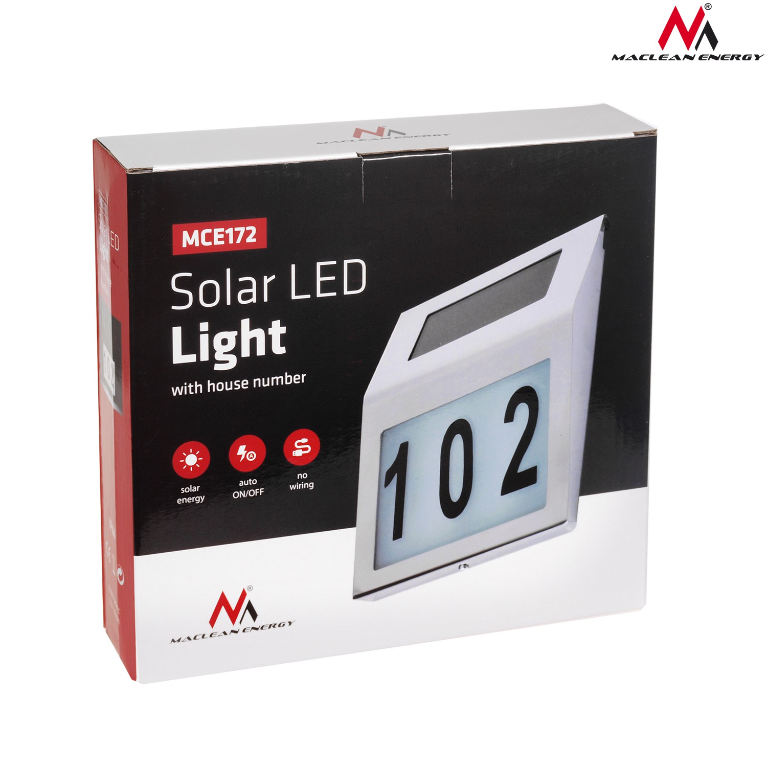 Lampa solarna z numerem domu LED Maclean Energy MCE172Lampa wykorzystuje energię słoneczną magazynowaną we wbudowanym wydajnym akumulatorze o pojemności 600mAh.Dioda LED zapewnia wielogodzinne działanie i dobrą widoczność numeru budynku w ciemności.