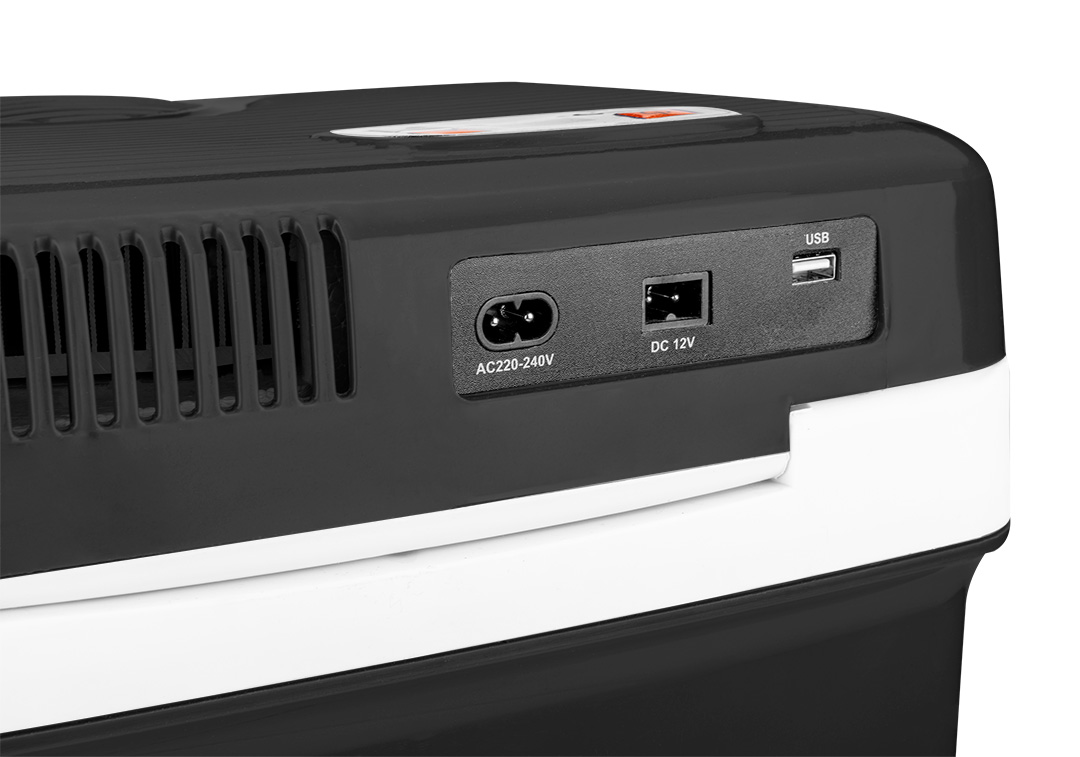 Lodówka turystyczna 2 w 1 grzanie i chłodzenie, waga 3.8kg, pojemność 26l, wymiary 405x320x430mm, eco-mode, zasilanie 230V oraz 12V, dwa przewody w zestawie 230V i 12V, elektroniczny panel sterujący, przewód zasilający HO3VVH2-F, port USB, chłodzenie
