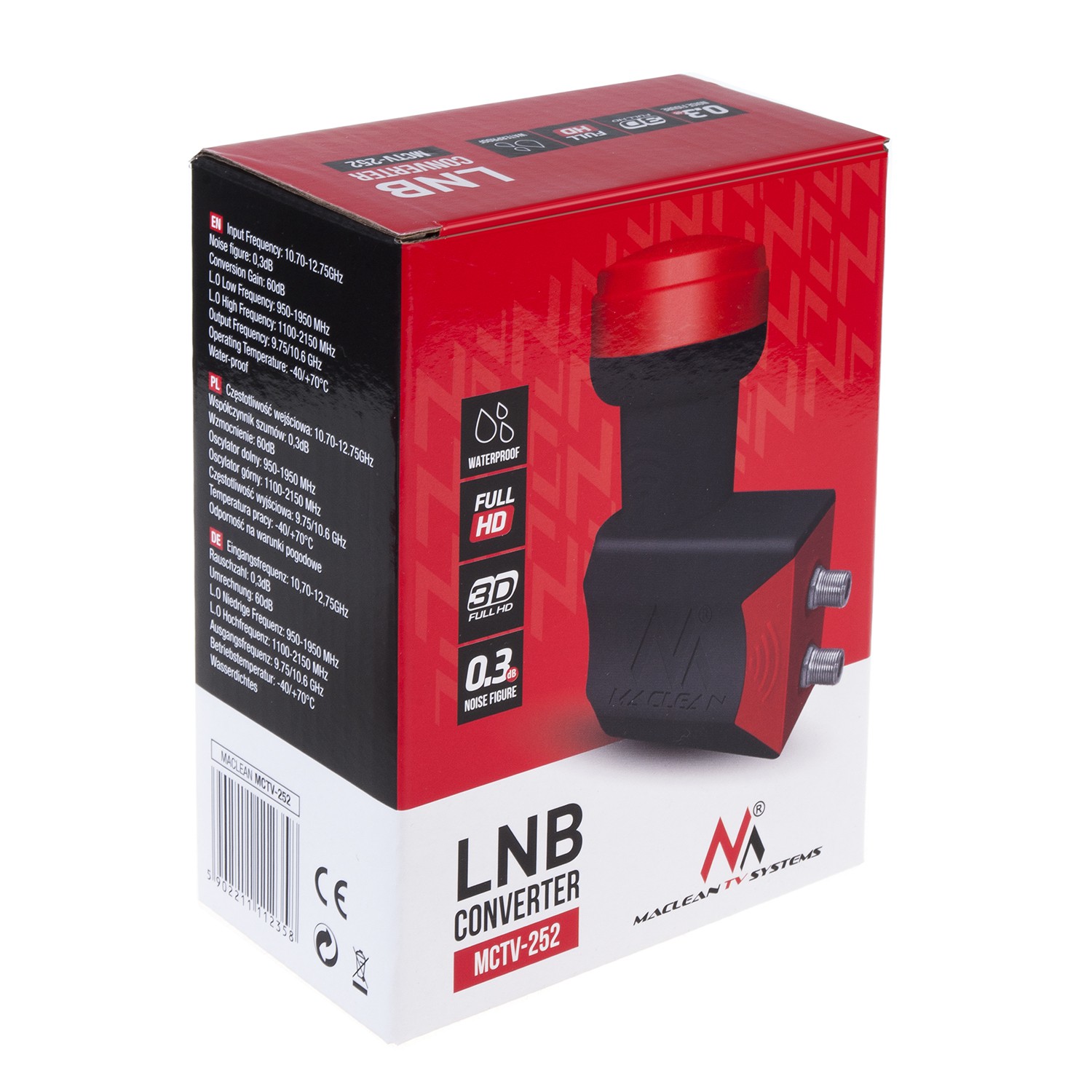Konwerter satelitarny Premium LNB typu twin posiada w jednej obudowie połączone dwa pełno zakresowe konwertery. Konwerter Twin Maclean MCTV-252 jest urządzeniem klasy premium o bardzo niskim współczynniku szumów. Bez pro