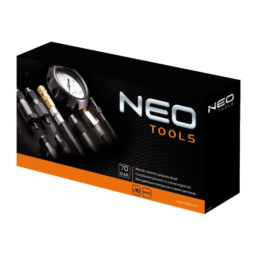 Miernik ciśnienia sprężania diesel, zestaw 16 szt., wskaźnik z odczytami PSI i BAR 0-1000PSI, zawór z przyciskiem szybkiego zwalniania, elastyczny wąż, przejściówka do świec żarowych rozmiar: 91mm M10x1.00, 135mm M10x1,25, 47mm M12x1,25; adapter do ś