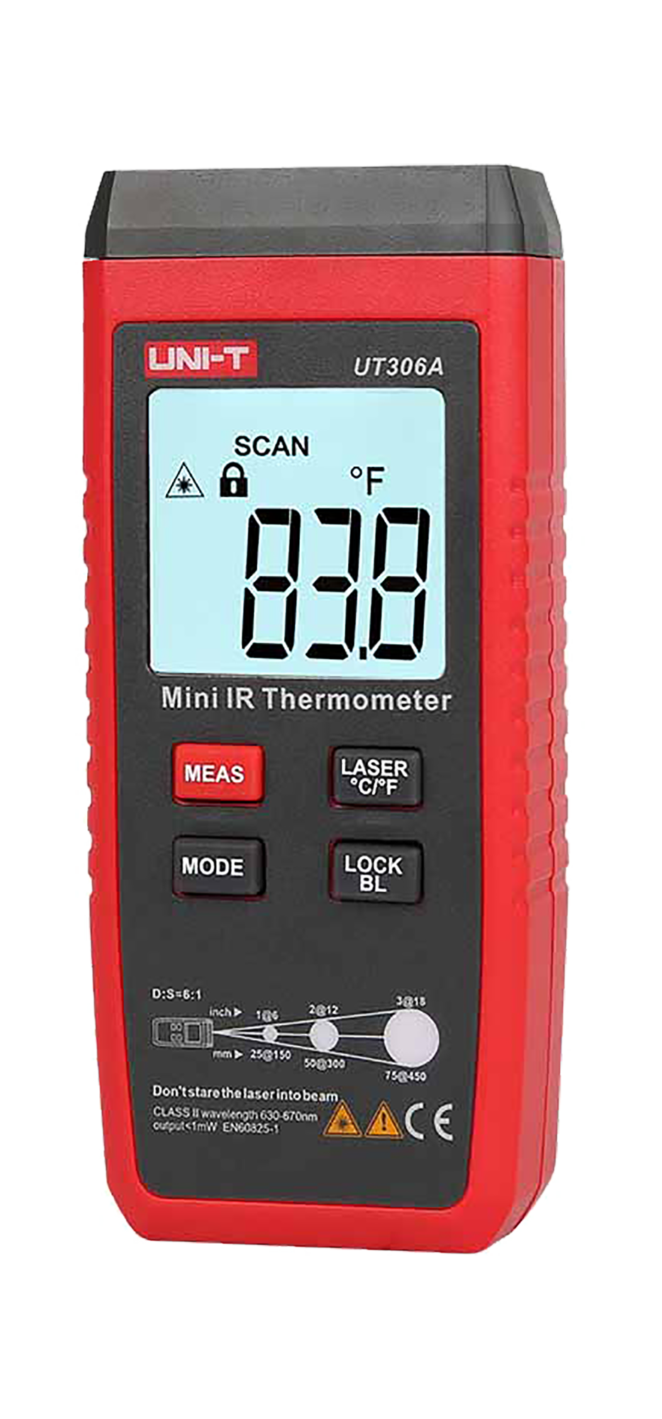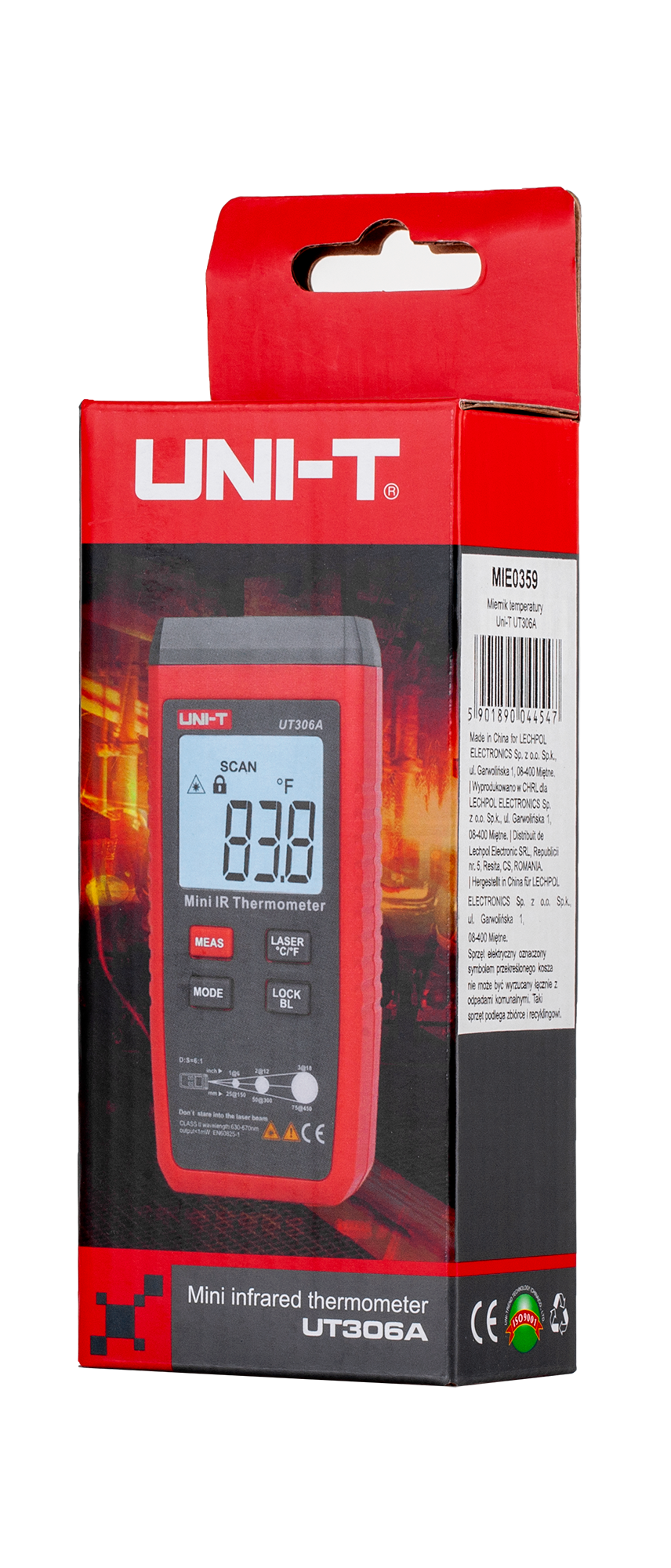 POMIAR TEMPERATURYZakres: -35°C ~ 300°C; -31°F ~ 572°FDokładność: ?2,0°C lub ?2%; ?4°F lub ?2%Powtarzalność: ?1,0°C lub ?0,1%; ?2,0oF lub ?0,1%Rozdzielczość: 0,1°C/0,1°FStosunek odległości do powierzchni testowanej: 6:1Czas odpowiedzi: 250 ms (95% od