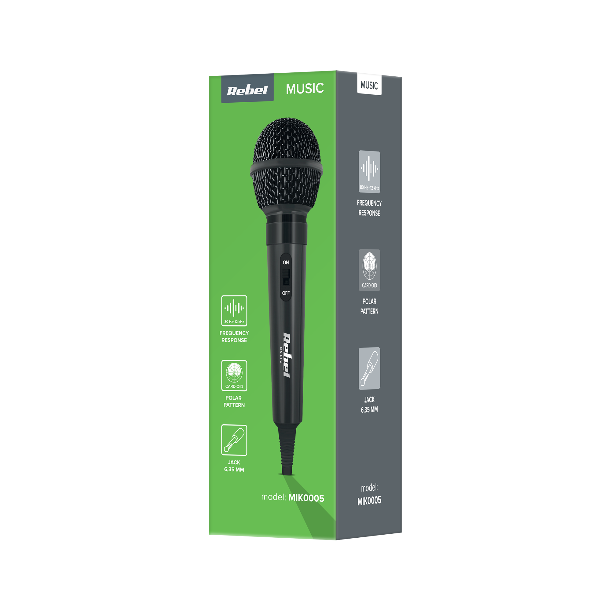 Pasmo przenoszenia: 80 Hz - 12 kHzImpedancja: 600 Ohm (+/- 30%)Czułość: -75 dBPołączenie: jack 6,35 mm