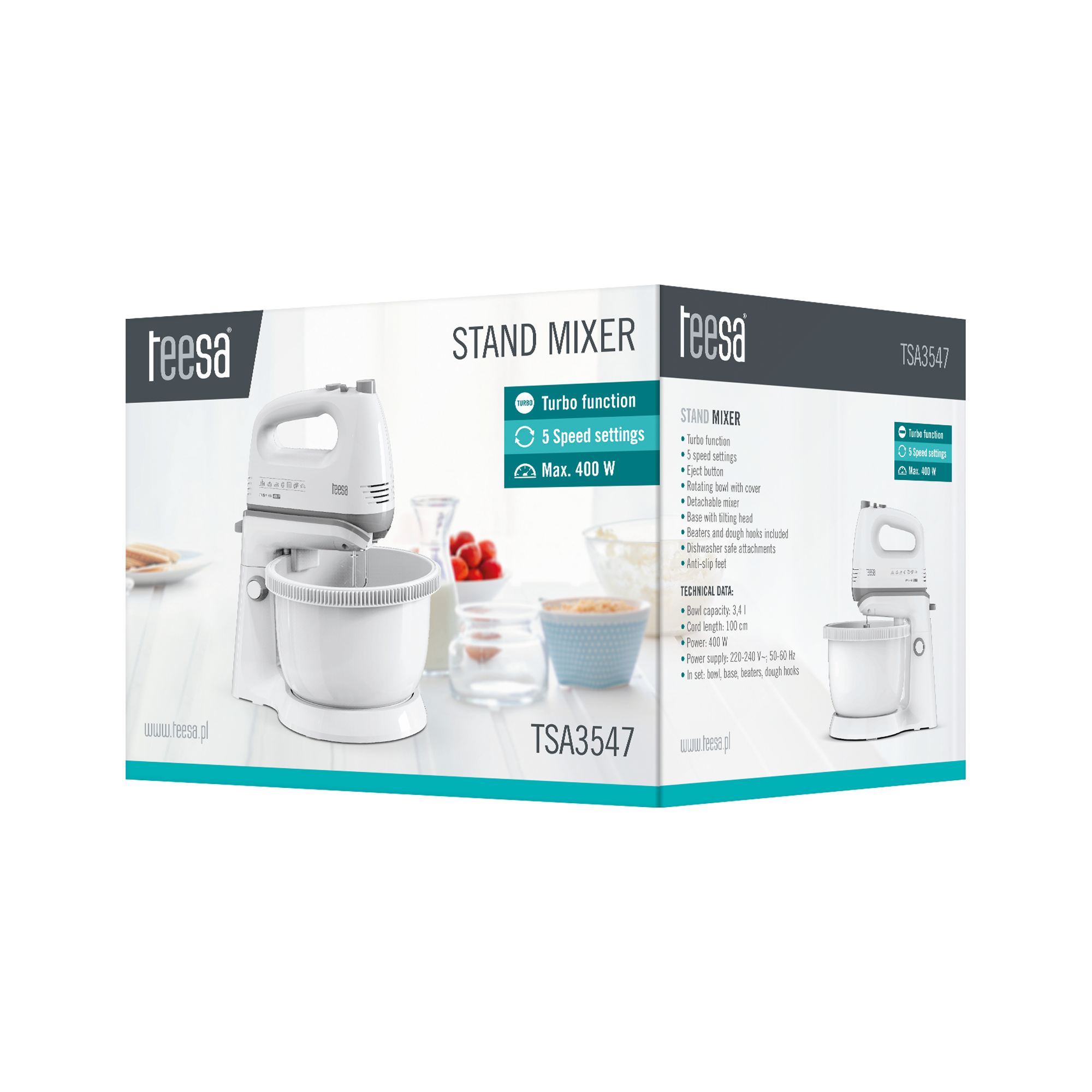 Mikser ręczny Teesa TSA3547 z misą obrotowąMikser kulinarny to urządzenie, które jest bardzo pomocne zwłaszcza podczas przygotowywania pysznych ciast. Dlatego właśnie, jeśli lubisz rozpieszczać domowników lub przyjaciół słodkościami, mikser powinien