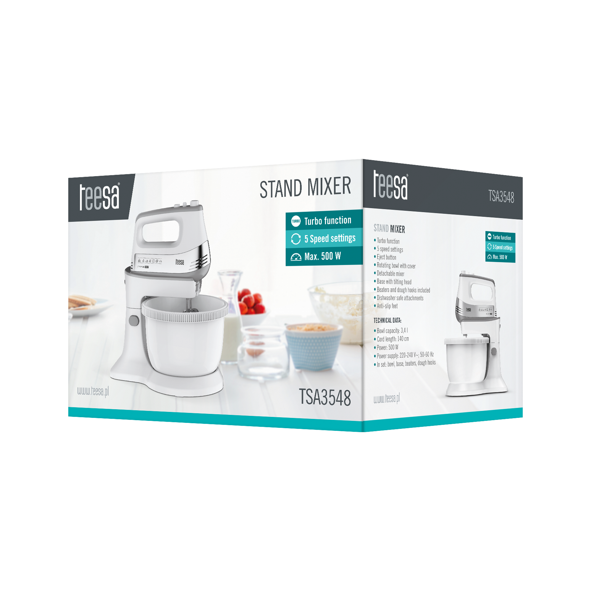 Mikser z misą obrotową Teesa TSA3548Każdy miłośnik kuchennych rewolucji potrzebuje dobrego sprzętu AGD, który uprzyjemni testowanie kolejnych przepisów. Mikser ręczny z obrotową misą o pojemności 3,4 litra to bez wątpienia urządzenie, które powinno z