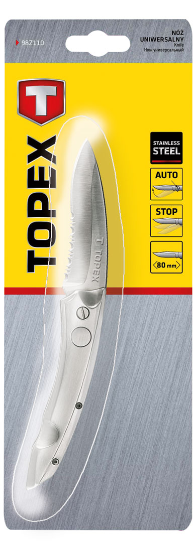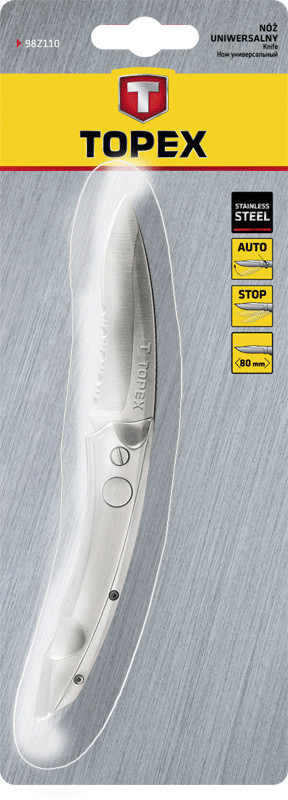Nóż uniwersalny, ostrze 80 mm, sprężynowy, nierdzewne ostrze, sprężynowy mechanizm rozkładania ostrza, metalowy korpus, blokada ostrza, zaczep na pasek