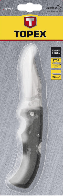 Nóż uniwersalny, ostrze 90 mm, składany, nierdzewne ostrze i korpus, blokada ostrza, gumowa rękojeść